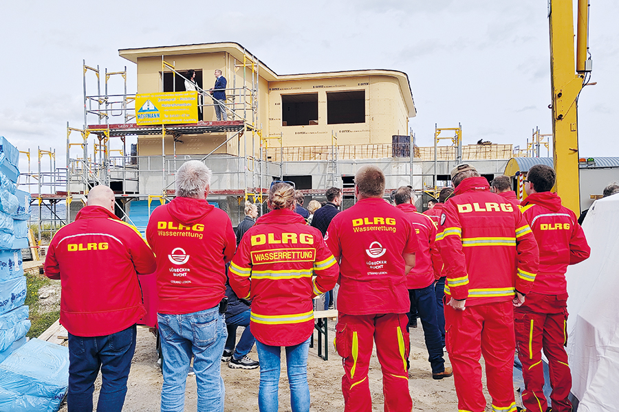 Mitglieder der DLRG beim feierlichen Richtfest Mitte September.